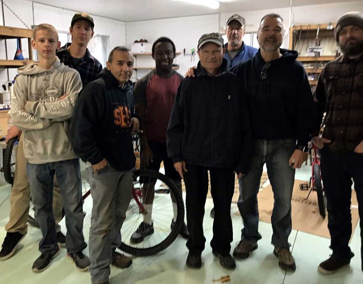 Ervin Kroeker has been organizing the Bikes for Tykes component of the Sonora Children’s Holiday Party for over 20 years. Jack Becker and Carl Baker of the MLBC joined Erv and Michael David, Jose Ortiz, Doug Ankrom, and Mike Suess for the December 7 work day to get donated bikes ready for the December 14 party at the Motherlode Fairgrounds in Sonora.