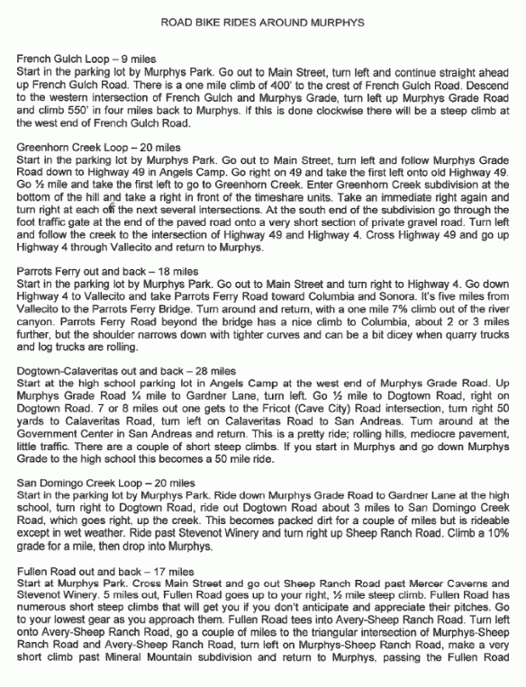 MLBC Chair Rob Williams is organizing this ride to increase visibility of cycling in Calaveras County and support local tourism, as well as to support Feeney Park in Murphys (Mr. Frog’s Wild Ride is a fundraiser for Feeney Park.)